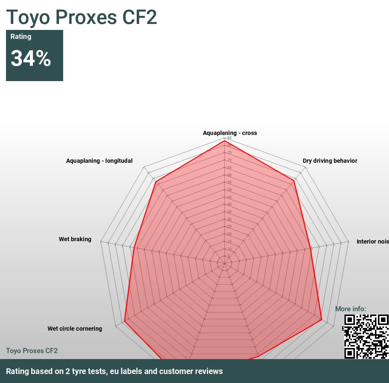 | Toyo Proxes CF2 | 2,8 | 2,2 | 2,3 | 2,0 | 2,0 | ||